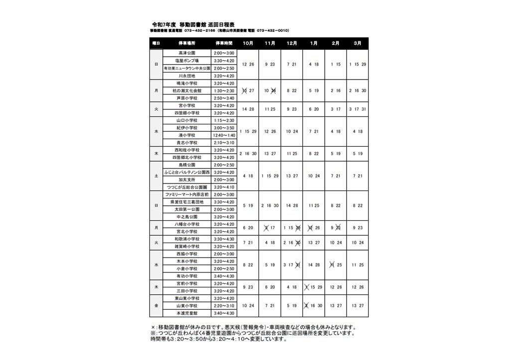 その他図書館側の事情で運休する場合がございます。予めご了承ください。