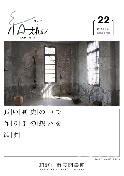 フリーペーパー「和 the」 和歌山市民図書館が発行する、まちの技・巧・匠を発信するフリーペーパー「和 the」(ワーザ)です。図書館がまちと接点をもち、まちが誇る文化や技術を発信しています。まだ知らない、ここ和歌山の魅力にぜひ触れてみてください。 最新号を公開しました。 和the Vol.22 長い歴史の中で作り手の想いを渡す 取材協力:norm 坂上宜義さん wathe22.pdf 「和the」 バックナンバー 和the Vol.22 長い歴史の中で作り手の想いを渡す/取材協力:norm 坂上宜義さん [PDF形式: 1,699.5 KB] 和the Vol.21 世界に誇る和歌山の編みのワザ/取材協力:株式会社エイガールズ 山下智広さん [PDF形式: 1,699.0 KB] 和the Vol.20 和歌山で至高の一本を作りだす/取材協力:Odeur 日下部正博さん [PDF形式: 1,218.8 KB] 和the Vol.19 黒江の暮らしと鍛冶屋の手しごと/取材協力:HOUSEHOLD INDUSTRY 武田伸之さん、武田牧子さん [PDF形式: 3,336.4 KB] 和the Vol.18 みんなにやさしい快適服を和歌山から/取材協力:fukufuku312 前田香さん / ドッグ繊維株式会社 MAKI DIV.紀田丈治さん [PDF形式: 1,998.4 KB] 和the Vol.17 食で人を幸せにする/取材協力:ベーカリー チックタック 輿石紘一さん [PDF形式: 2,276.2 KB] 和the Vol.16 一軒家が引き立てる和歌山の良さ/取材協力:STUDIO ADDITION 湯川聡美さん [PDF形式: 1,146.5 KB] 和the Vol.15 うみまちづくり 雑賀崎を100年先まで/取材協力:Fisherman's Table&Stay 新七屋 池田佳祐さん [PDF形式: 1,823.0 KB] 和the Vol.14 新たな自分に出会う場所/取材協力:SUNDAEオーナー木村知弘さん [PDF形式: 1,104.8 KB] 和theVol.13 作り手と食べ手をつなぐローカル食品店/取材協力:フードセンターイワセ 石井佳奈さん [PDF形式: 1,963.6 KB] 和the Vol.12 ものづくりのまち 和歌山をつくる/取材協力:有限会社 菊井鋏製作所 菊井健一さん [PDF形式: 1,769.8 KB] 和the Vol.11 宇宙が和歌山を守るための挑戦/取材協力:和歌山大学教授 秋山演亮さん [PDF形式: 3,321.4 KB] 和the Vol.10 和歌山に生まれた新たな発酵文化のカタチ/取材協力:三木町発酵ビルヂング 秋山理絵さん [PDF形式: 1,755.2 KB] 和the Vol.9 みその2.0 新しい商店街のカタチ/取材協力:前川 怜輝さん [PDF形式: 1,687.2 KB] 和the Vol.8 SDGs x 漫才 笑いが生み出す ’自分ゴト’/取材協力:SDGs BOYs [PDF形式: 1,215.9 KB] 和the Vol.7 移住を通したまちの魅力/取材協力:和田山真央さん [PDF形式: 1,209.4 KB] 和the Vol.6 和歌浦で、かまぼこ文化をもう一度/取材協力:和歌濱かまぼこ株式会社 [PDF形式: 1,160.4 KB] 和the Vol.5 かつての銭湯といまの銭湯/取材協力:幸福湯 中本有香さん [PDF形式: 1,707.5 KB] 和the Vol.4 廃材の見えないチカラを引き出す取り組み/取材協力:造形作家 石田真也さん [PDF形式: 1,229.3 KB] 和the Vol.3 和歌山のちいさな出版社/取材協力:KORVAPUUSTI 岩城真理さん [PDF形式: 1,310.7 KB] 和the Vol.2 地域の誇りをビールからブランディングする/取材協力:株式会社吉田・野嶋牧場・旬彩くまの・エイム株式会社 [PDF形式: 1,450.2 KB] 和the Vol.1 手袋から始まったニットの可能性/取材協力:株式会社島精機製作所 [PDF形式: 740.4 KB]